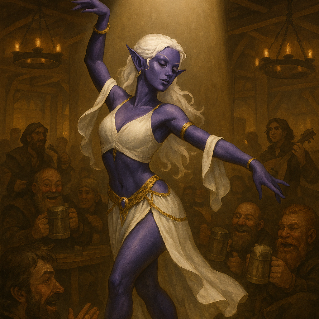 Ivonne Laurent is a popular drow performer in the Thirsty Deckhand. She is exotic, as drows are rare in these parts. She has connections to Louis Jean Moreau and acts as one of his trusted operatives. She is known as the Darling of the Docks, for her beauty and charm. One of the most sought after courtesans of Gullenshire, she won’t offer her services just for anyone.