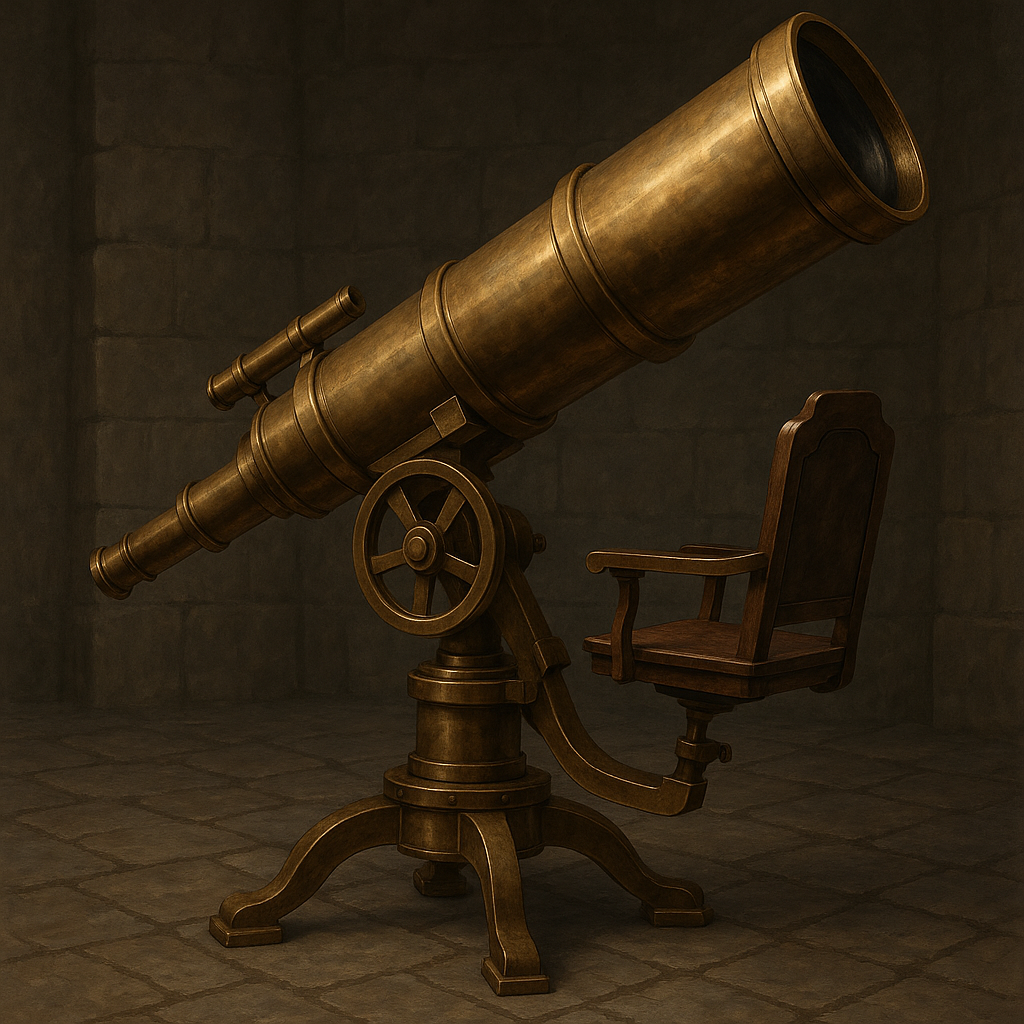 This enormous telescope is an enchanted instrument of research, allowing the operator to see distant places in great detail. While attuned to this telescope and looking through it, you can cast Scrying 5th Level (Divination)